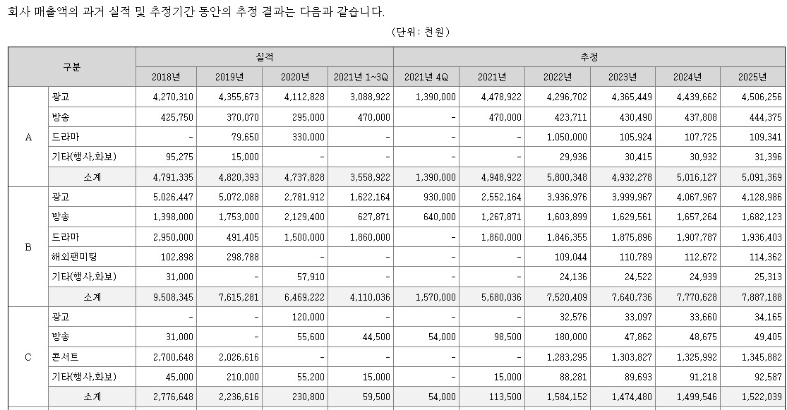 이에 따라 이승기가 B이면 이승기의 음악을 제외한 매출은 2018년 95억, 2019년 76억, 2020년 64억입니다.