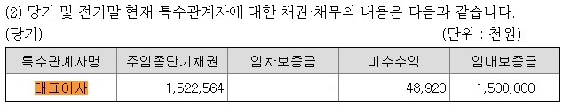 이자율은 -으로 되어있습니다. 이승기는 최소 2014년부터 2020년 말까지 무이자로 후크엔터테인먼트에 돈을 빌려주고 있었던 입장입니다. 2012년도에도 보니 이때도 같은 금액이 단기차입금으로 잡혀있었으나, 정확한 차입처가 적히지 않아 확실하진 않지만 최소 6~8년간 후크엔터테인먼트에 돈을 무이자로 빌려주며 회사에 경영에 도움을 주고 있었습니다. 반면 권진영은 회사에서 임대보증금 등의 명목으로 20~30억 이상의 돈을 빌렸습니다.